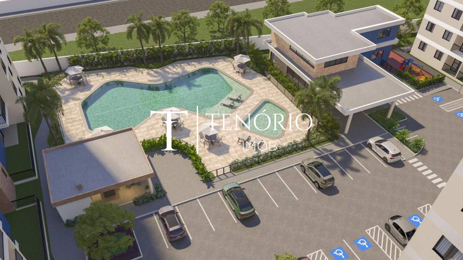 Piscina adulto e infantil com deck molhado e raia de 20m